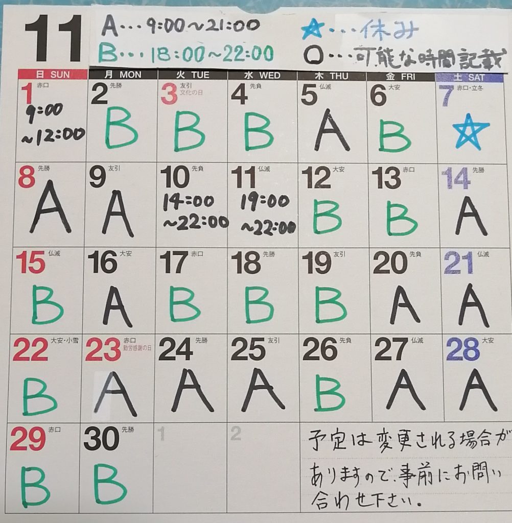 整心体11月の予定です。