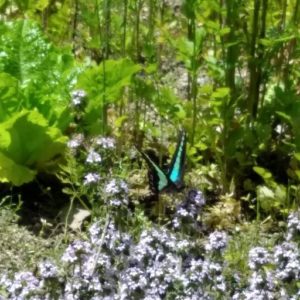 蜜蜂 あしなが蜂 くまんばち ハエもいる! ハナムグリとか 名前も知らない赤い甲虫とか 青い模様のおっきな蝶