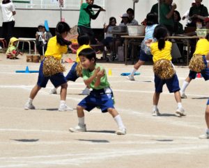 音楽に合わせての踊り!ポンポンふって、旗をふってをカメラに収めたくて追っかけに熱中。落ち着いてみていない。しまった!その割にうまく撮れていない。あんなにたくさんの振りをよく覚えたなあ~足並みをそろえること苦手だったよね!がんばった!かっこいいぞ息子!