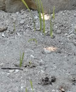 工事終了はつい数日前なのに、ひとつき 土にうもれていたニラがもうにょきにょき